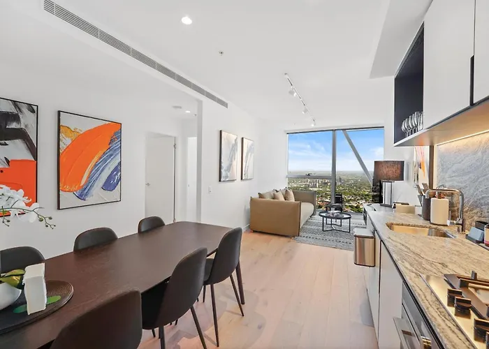 メルボルンでの休暇を楽しむには、移住博物館から徒歩で15分で、クラウンカジノ&娯楽施設から1.3kmの74m²のAmazing City View West Side Luxe 2B2B With Pool Gym Sauna Parking メルボルンアパートがあります。 顧客の余暇を多様化するために、プライベートなプールもあります。